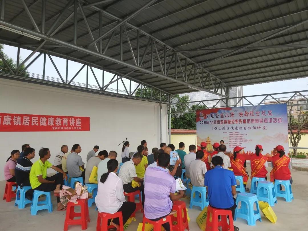 北海市道德模范率先垂范进基层宣讲暨铁山港区健康教育知识讲座在南康镇雷田村举办?;疃氡焙J械赖履7逗卧犊匠⌒玻荚谠銮看迕竦慕】狄馐?,弘扬道德模范精神?;疃杀焙J形俊⑹形拿靼?、市新时代文明实践中心主办,铁山港区委宣传部承办。
