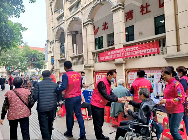 坚持党建引领,筑牢志愿服务坚实根基。北部湾社区坚持“凝聚党心、服务群众”的工作定位,通过党建引领社区治理、网格化服务管理,不断提升居民群众的幸福感。320名在职党员干部积极到社区报到,下沉社区开展各项为民服务活动200余场?;贫拔迳纭绷朊窦渲驹刚咝峤?,志愿服务队走访慰问困难家庭、残疾家庭等特殊群体500多人次。发挥离退休干部职工党员先锋模范作用,引进6名离退休的“三官一律”人员进社区,为群众提供法律咨询和法律援助600余人次,协调矛盾纠纷230件。鼓励党员参与残疾群体帮扶行动,动员在职党员、退休党员开展一对一帮扶,目前已有20余名党员志愿者与残疾家庭结成帮扶关系,定期联系沟通,提供助残服务。
