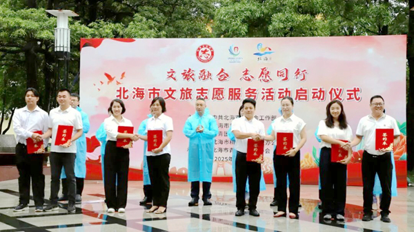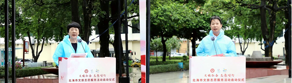志愿者代表宣读了《北海市文旅志愿服务倡议书》,呼吁更多市民加入志愿队伍,共同绘就北海文旅的文明图景。